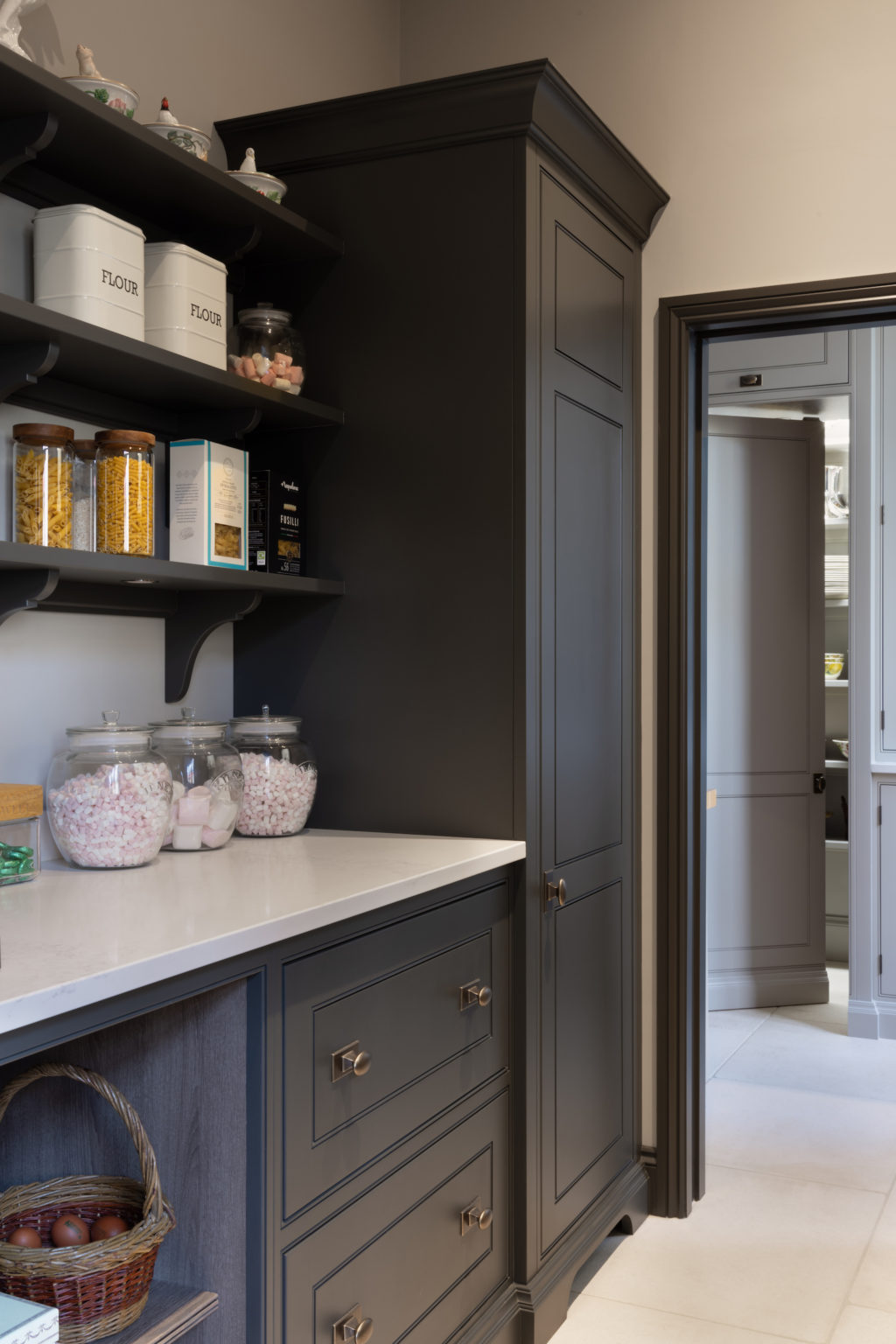 We loved working on the Chobham project for which we designed, made, installed and finished a large everyday kitchen, a prep kitchen for entertaining, walk in refrigerator, pantry, china room, informal dining room and a utility/boot room. This is a historic family home that needed a full refresh including minor structural work and an overhaul in design and layout. From the start, the goal was to achieve something timeless, bold and practical for entertaining on any scale.