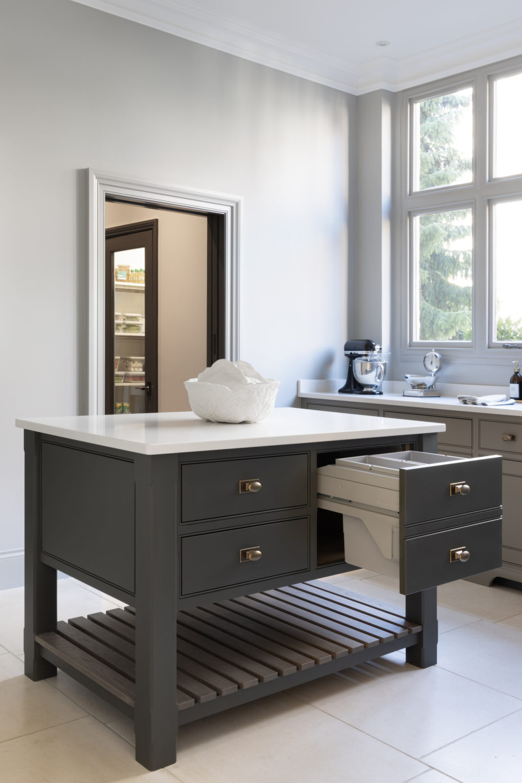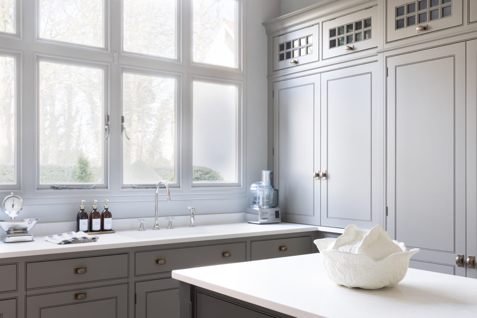 We loved working on the Chobham project for which we designed, made, installed and finished a large everyday kitchen, a prep kitchen for entertaining, walk in refrigerator, pantry, china room, an informal dining room and a utility/boot room. This is a historic family home that needed a refresh which was achieved with some minor structural work and an overhaul in design and layout. From the start, the goal was to achieve something timeless, bold and practical for entertaining on any scale.