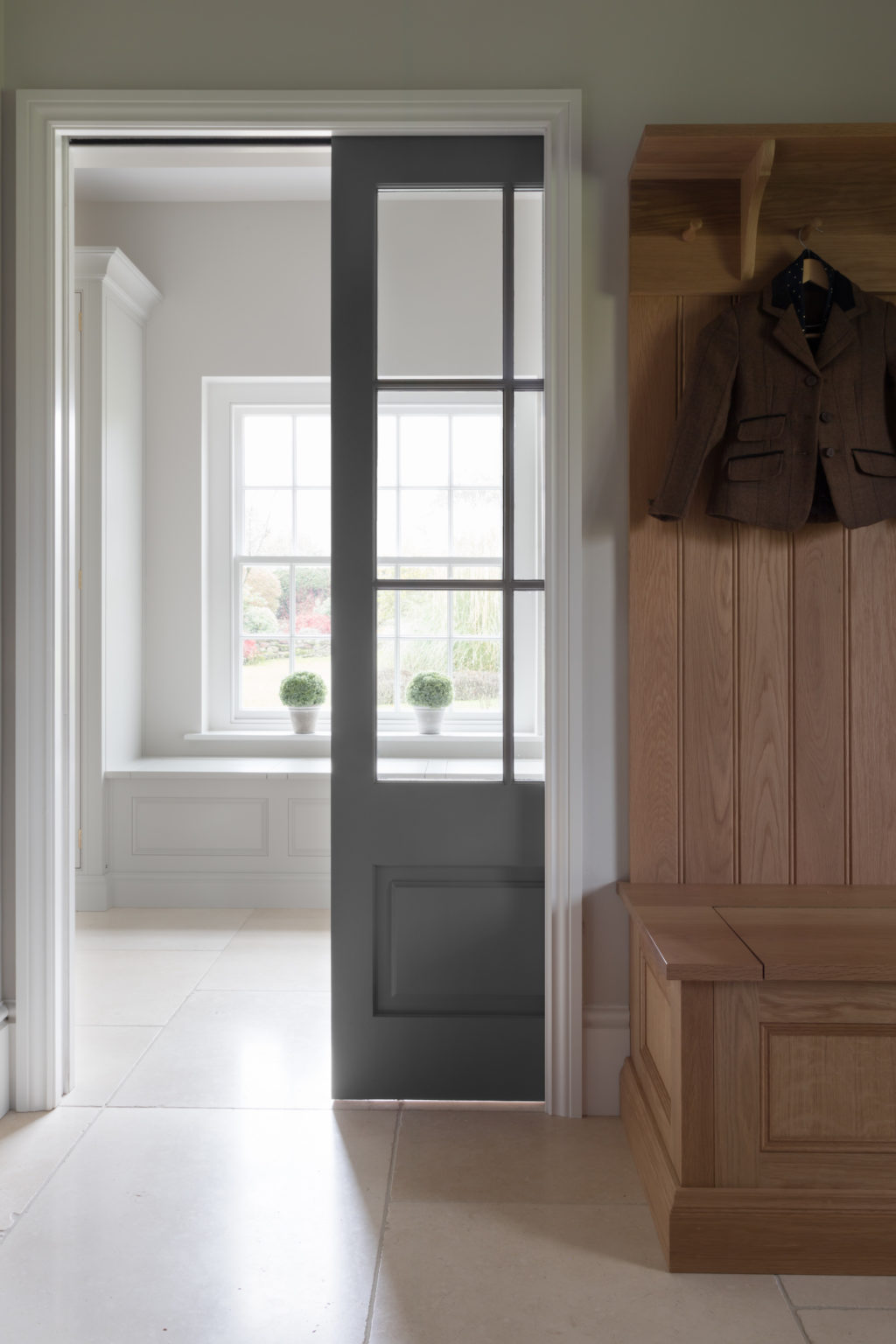 With a love for the great outdoors, the homeowners needed a boot room with cabinetry that provide somewhere to kick off muddy boots and to dry wet coats. Finished in classic oak this bench seat with overhead artisan shelf and pegs means hacking jackets, riding hats and boots can be easily put on or stored…