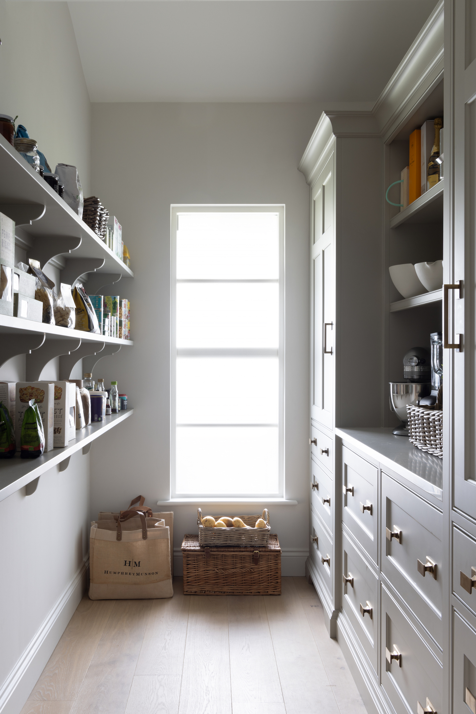 A pantry can be so much more than just a storage room and this incredibly well-stocked walk-in pantry is the perfect example of that. Open artisan shelves keep smaller packets, tins and a plethora of spices well-organised whilst the right side of the room has been designed for easy food prep on the open counter…