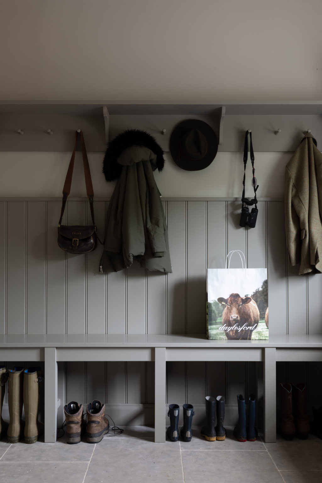 A beautiful and historic country house reimagined, redesigned and reinvigorated for modern family living. Balancing old and new, we designed this boot room area using a mix of open and closed Nickleby cabinetry, finished with aged brass hardware creating a classic English look.
