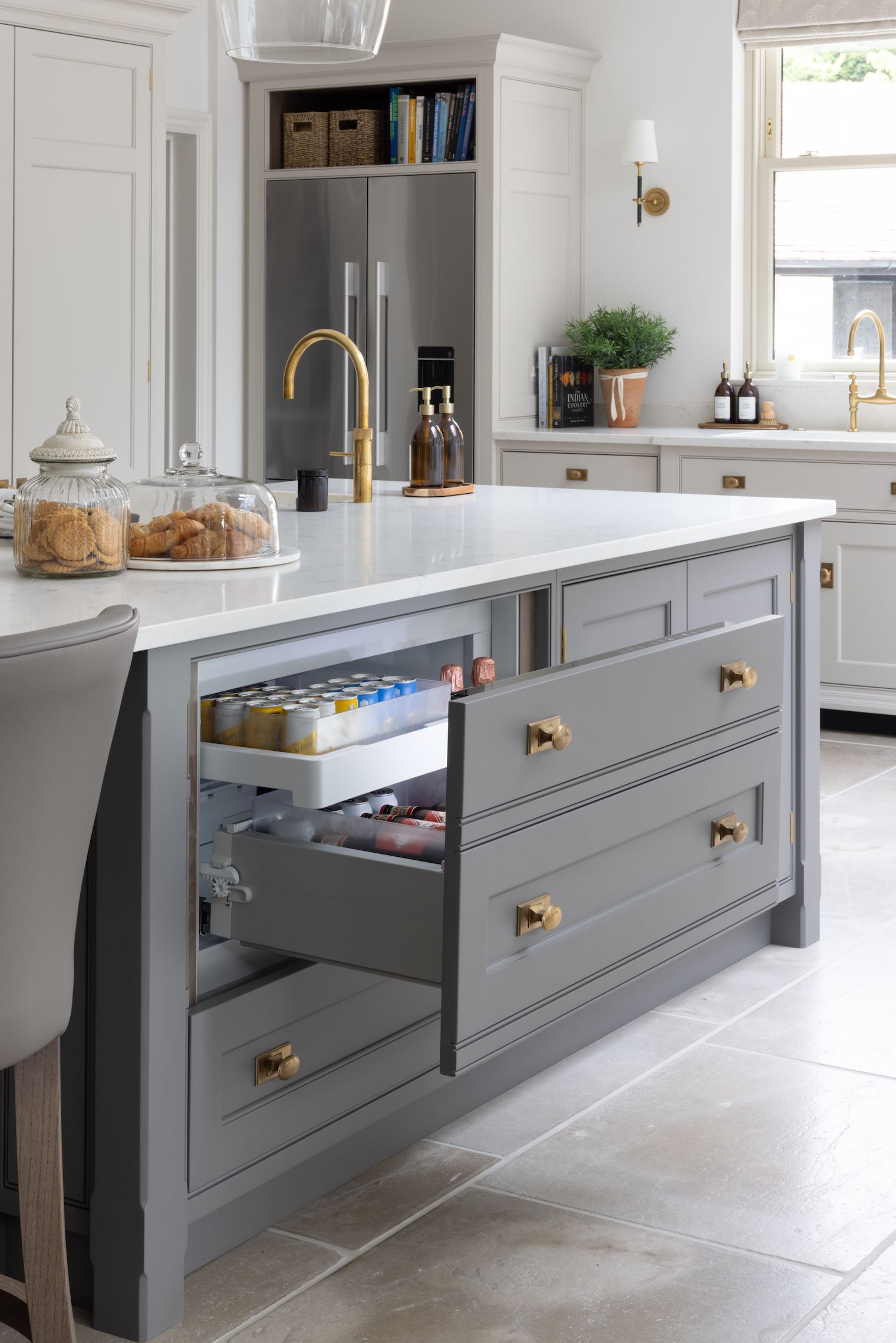 We’re proud to design and manufacture all our kitchens at our workshop in Felsted where the traditional joinery of the past meets the technical innovation of the present. We employ only the finest cabinetmakers whose passion for their craft is proudly displayed in each beautiful handmade kitchen. As well as kitchens, we also design, manufacture and install cabinetry throughout the rest of the home. In order to offer a truly bespoke kitchen design service, we provide a curated selection of accent woods, worktops and hardware along with our own paint range produced exclusively for Humphrey Munson by Mylands.