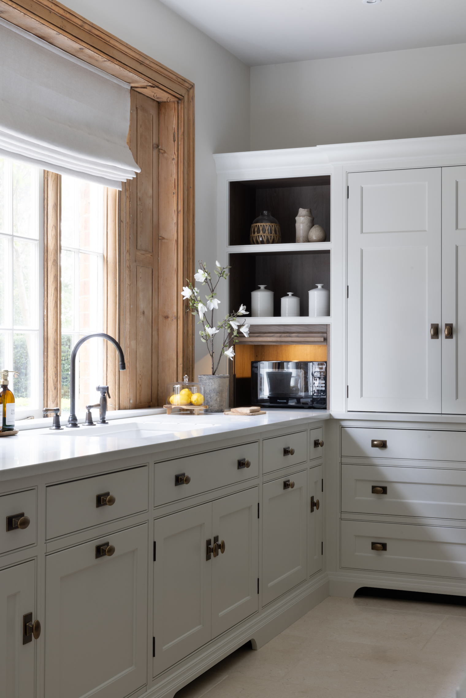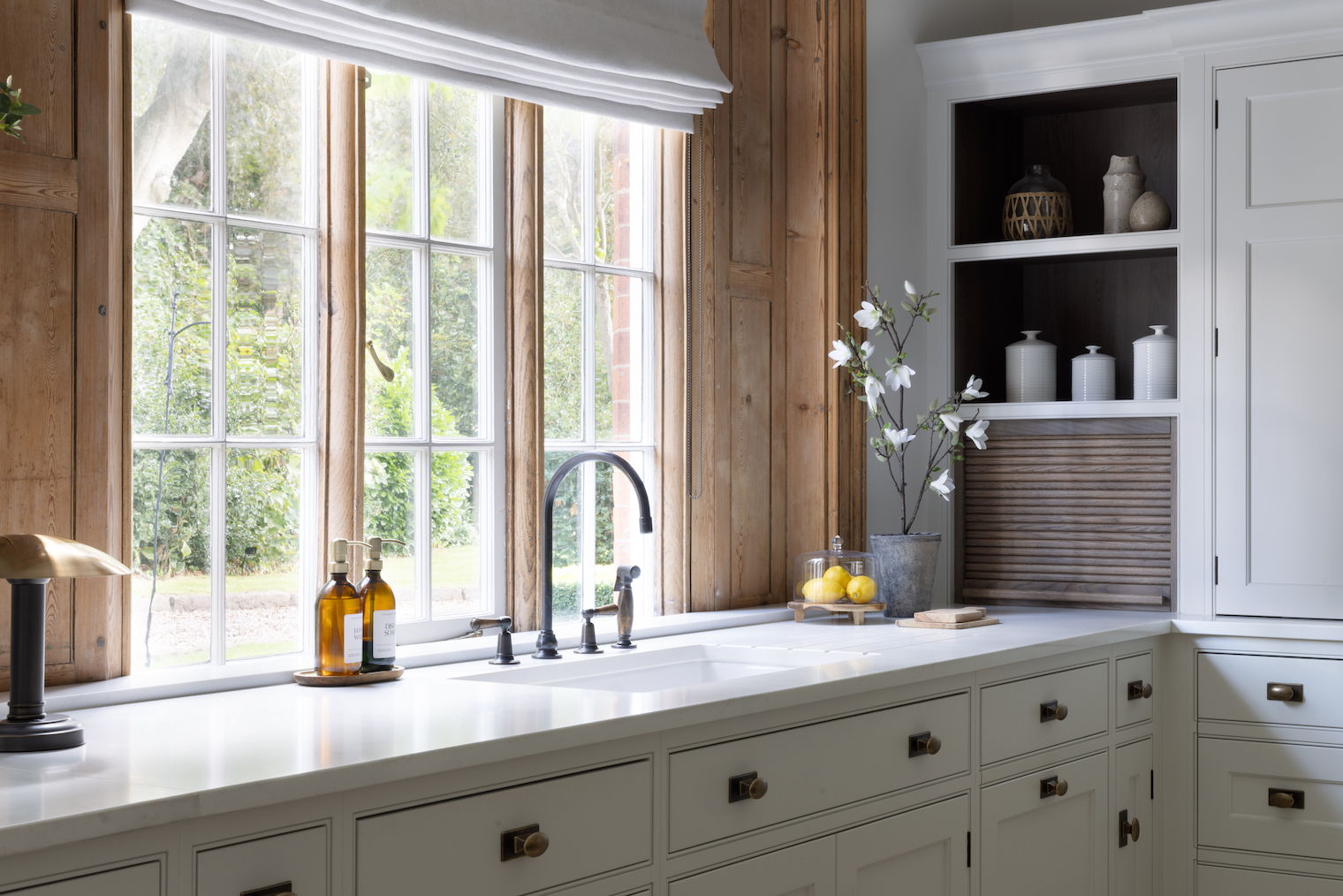 We’re proud to design and manufacture all our kitchens at our workshop in Felsted where the traditional joinery of the past meets the technical innovation of the present. We employ only the finest cabinetmakers whose passion for their craft is proudly displayed in each beautiful handmade kitchen. As well as kitchens, we also design, manufacture and install cabinetry throughout the rest of the home. In order to offer a truly bespoke kitchen design service, we provide a curated selection of accent woods, worktops and hardware along with our own paint range produced exclusively for Humphrey Munson by Mylands.