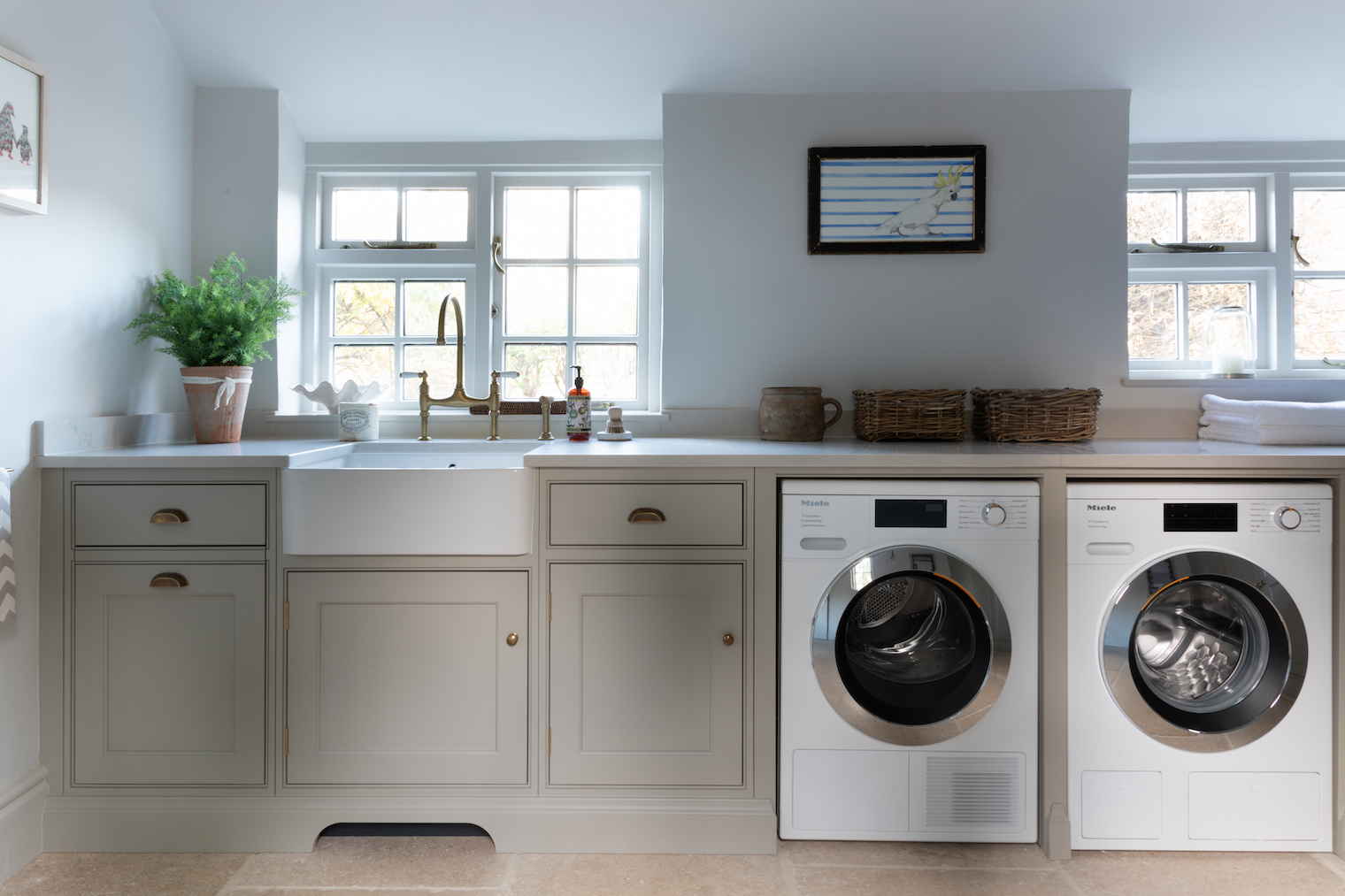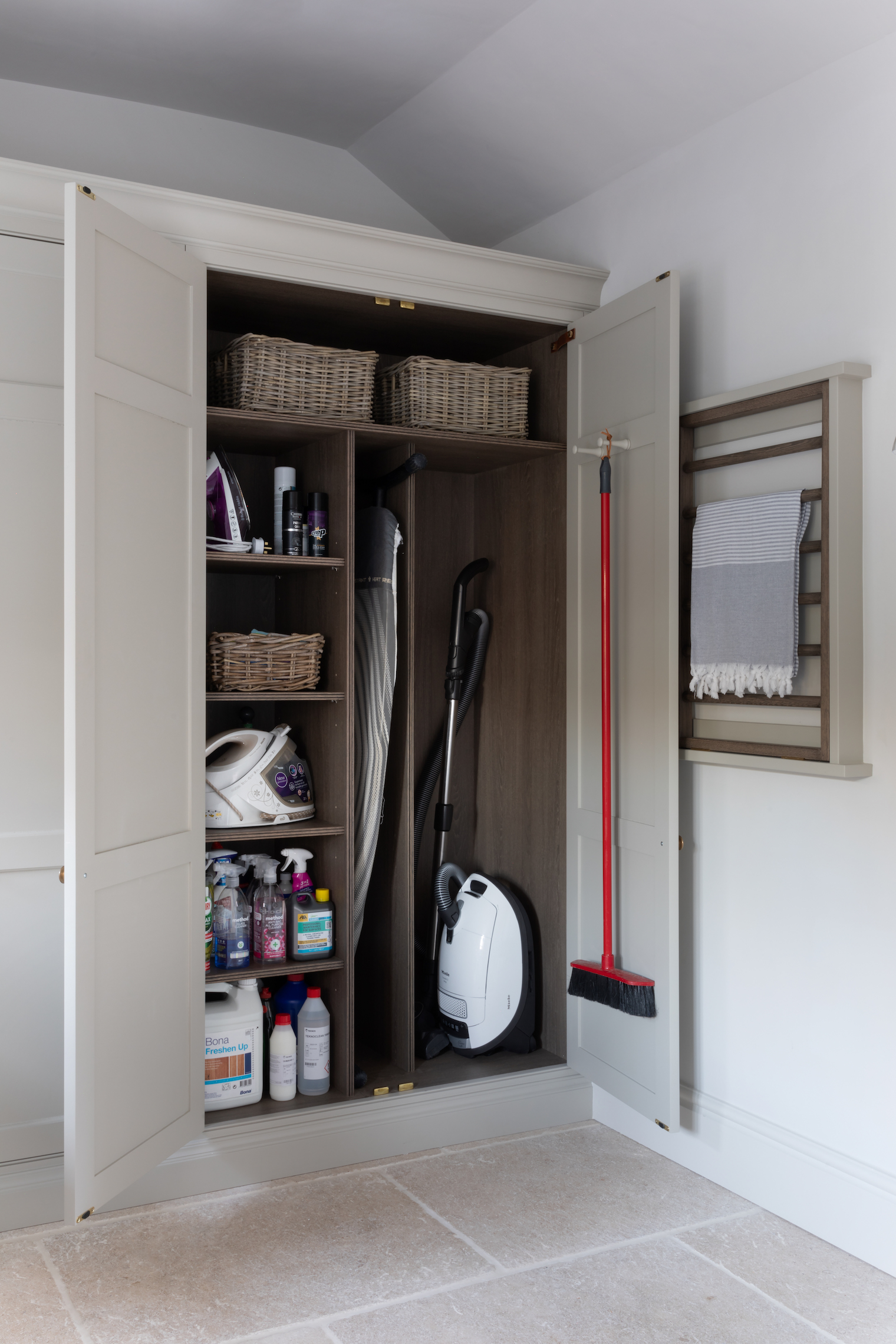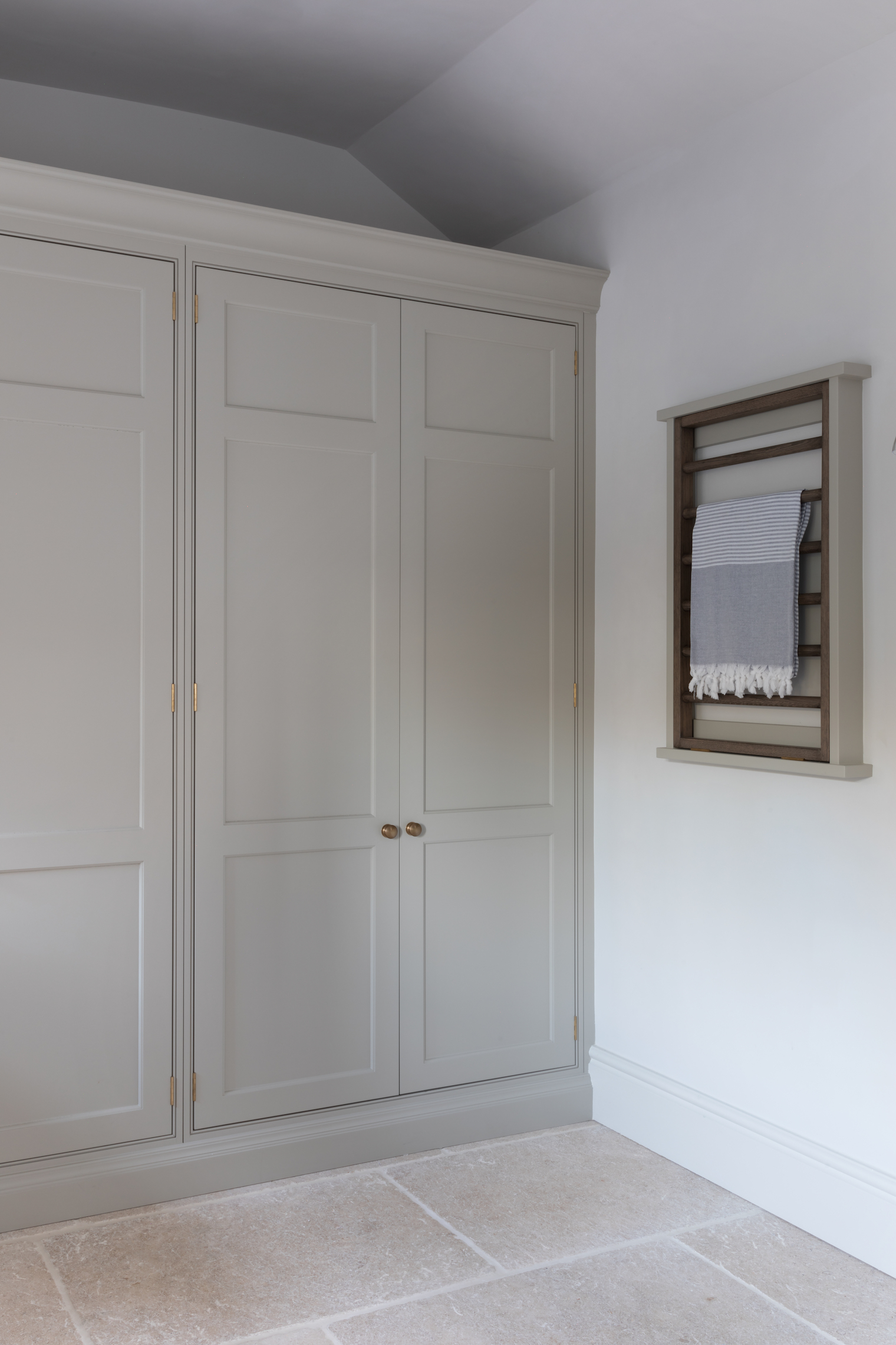 As well as the exceptional open-plan kitchen, dining, and snug area featuring HM’s signature handmade cabinetry, we also designed the walk in pantry concealed behind secret doors, a large boot room including a coat and boot walk in cupboard, and the utility room.