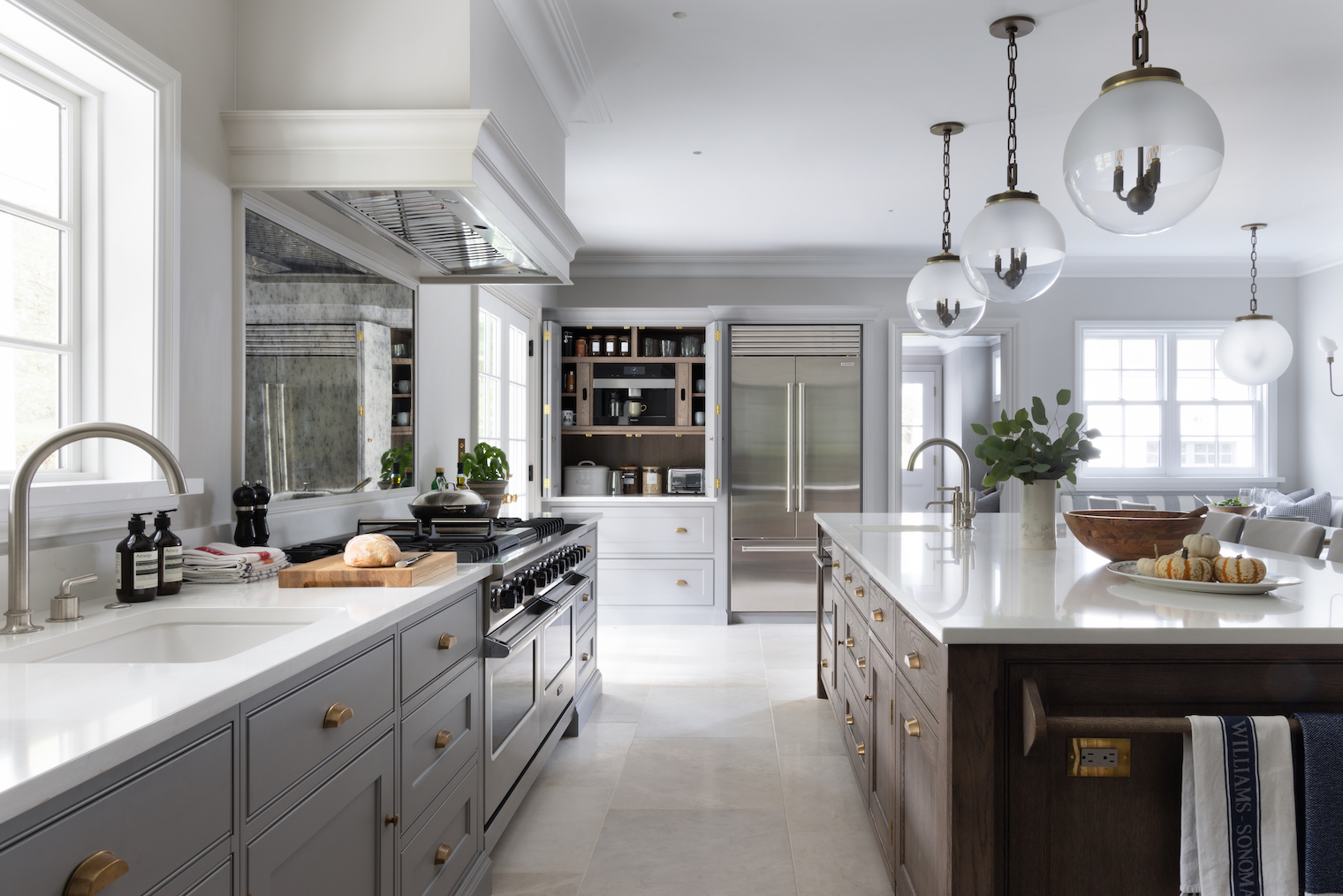 The clients came to Humphrey Munson for our hallmark quality and enduring craftsmanship and envisioned a kitchen that would serve as the heart of the home; a place designed for both serious cooking and gathering of family and friends. The result is a stunning, handmade kitchen complemented by seamlessly connected spaces: a walk-in pantry, a sophisticated butler’s drinks pantry, a well-equipped laundry room, and a practical boot room, all featuring HM’s signature cabinetry.