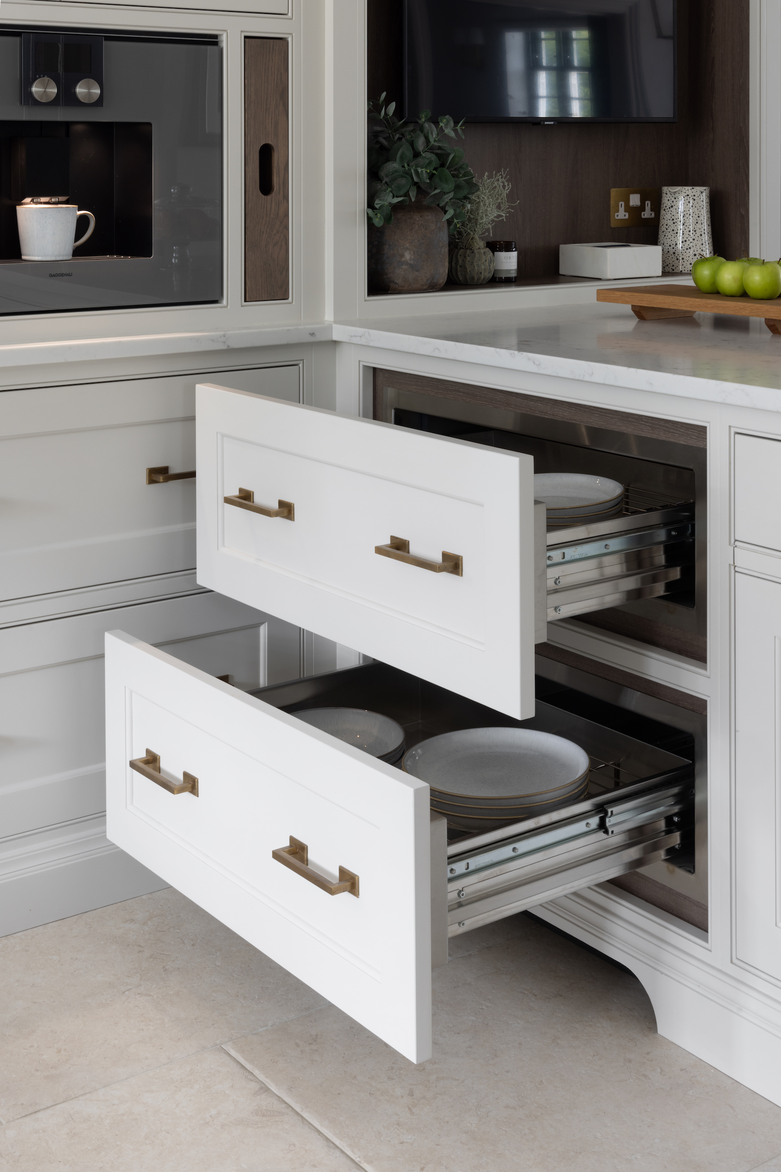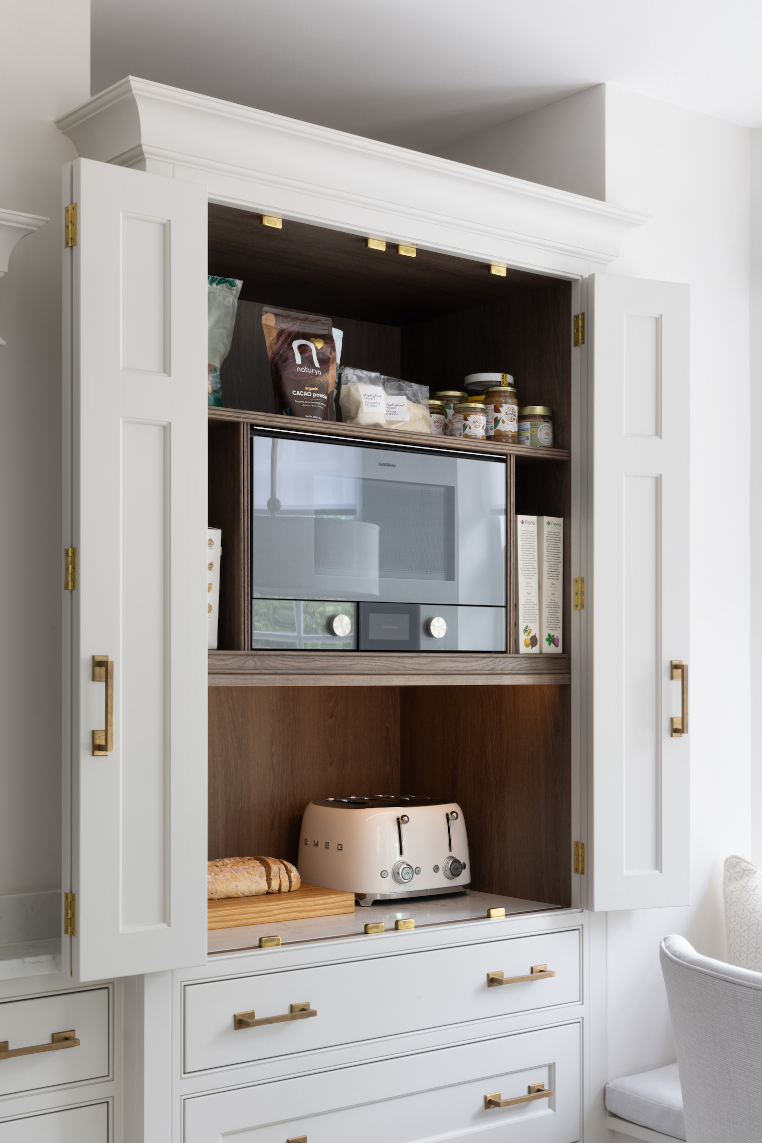We’re proud to design and manufacture all our kitchens at our workshop in Felsted where the traditional joinery of the past meets the technical innovation of the present. We employ only the finest cabinetmakers whose passion for their craft is proudly displayed in each beautiful handmade kitchen. As well as kitchens, we also design, manufacture and install cabinetry throughout the rest of the home. In order to offer a truly bespoke kitchen design service, we provide a curated selection of accent woods, worktops and hardware along with our own paint range produced exclusively for Humphrey Munson by Mylands.