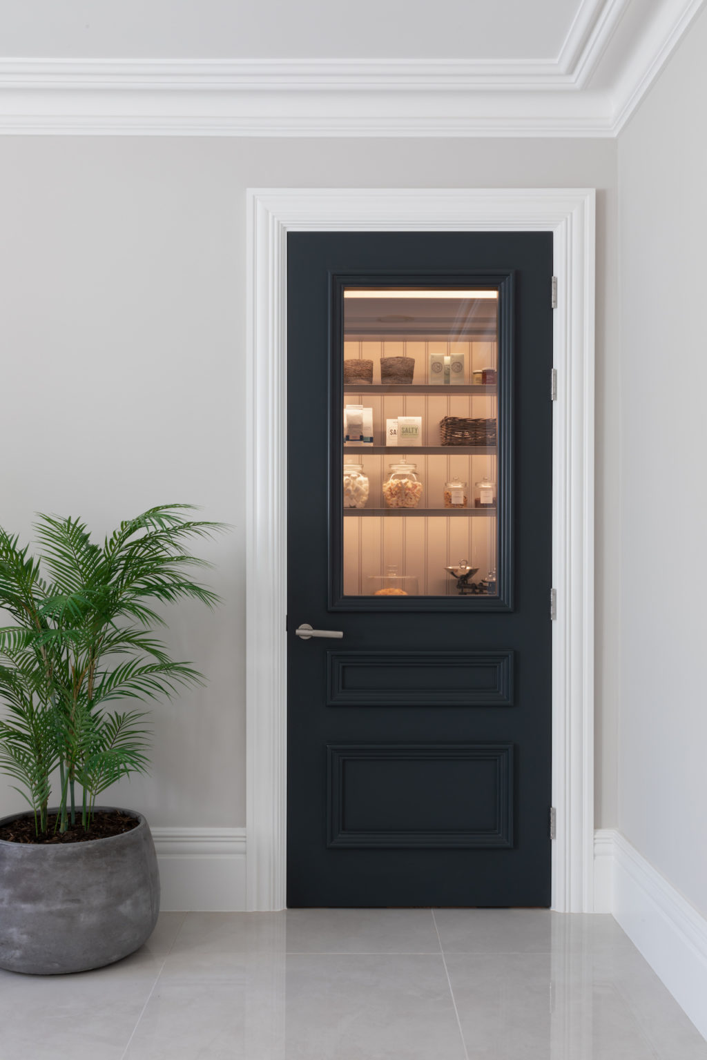 A truly outstanding new build family home designed and executed with meticulous attention to detail. The wrap around contemporary glazing ensures the open plan kitchen, dining and sitting room make the most of the views of the immaculately manicured gardens and surrounding woodland. In addition to the kitchen, the Humphrey Munson team also designed, manufactured and installed the cabinetry in the walk in pantry, utility room and boot room.