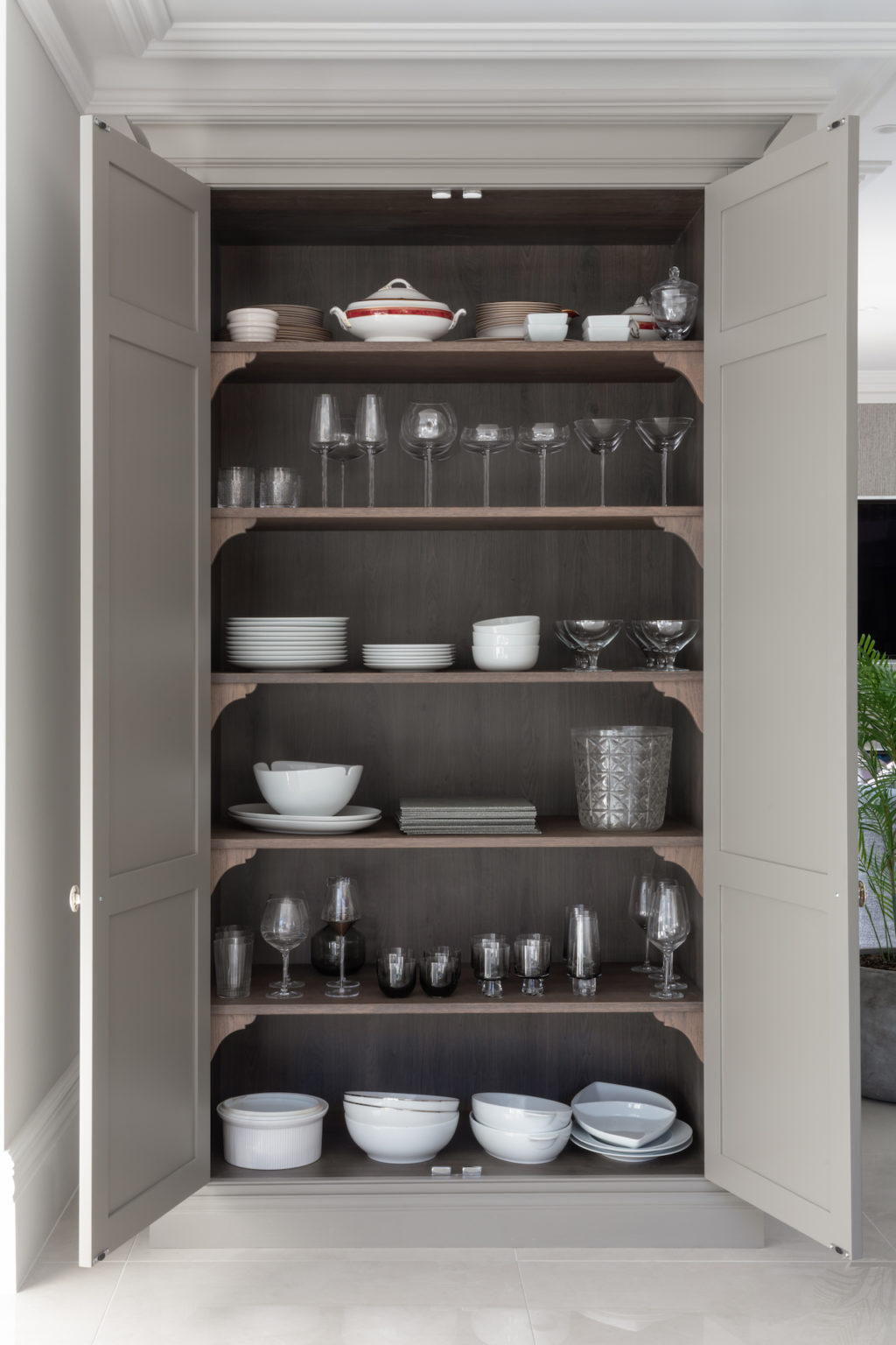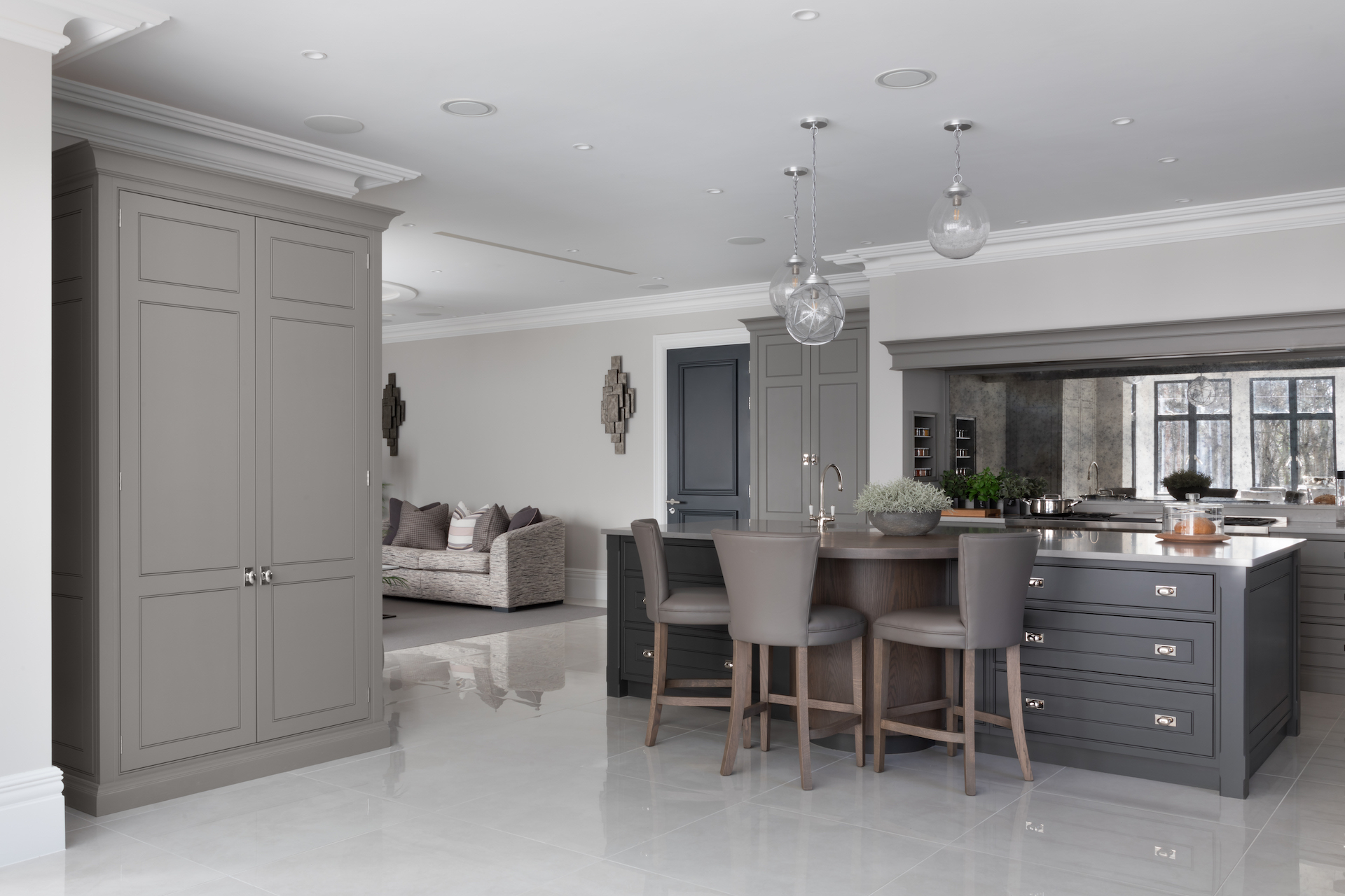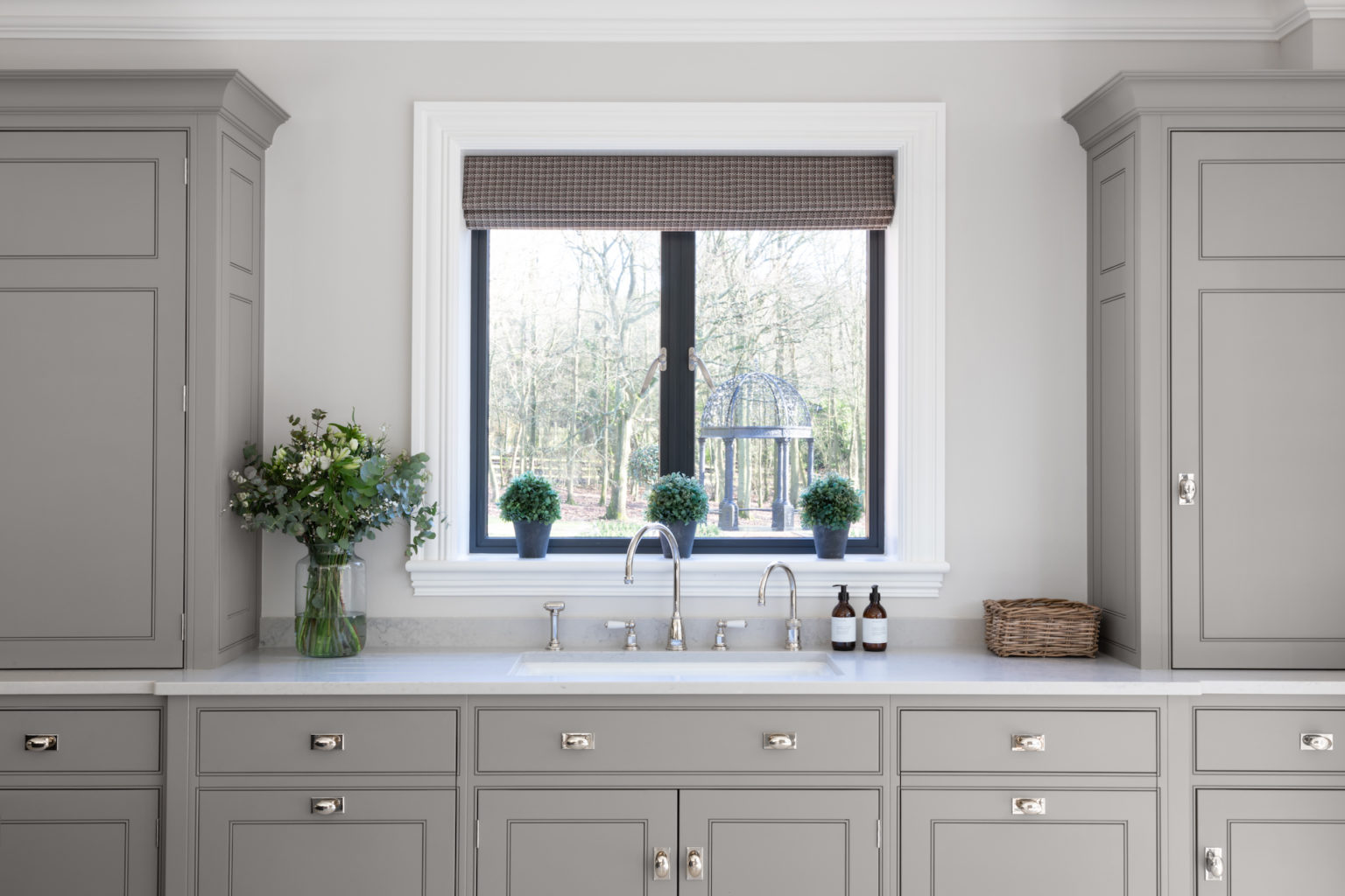 A truly outstanding new build family home designed and executed with meticulous attention to detail. The wrap around contemporary glazing ensures the open plan kitchen, dining and sitting room make the most of the views of the immaculately manicured gardens and surrounding woodland. In addition to the kitchen, the Humphrey Munson team also designed, manufactured and installed the cabinetry in the walk in pantry, utility room and boot room.