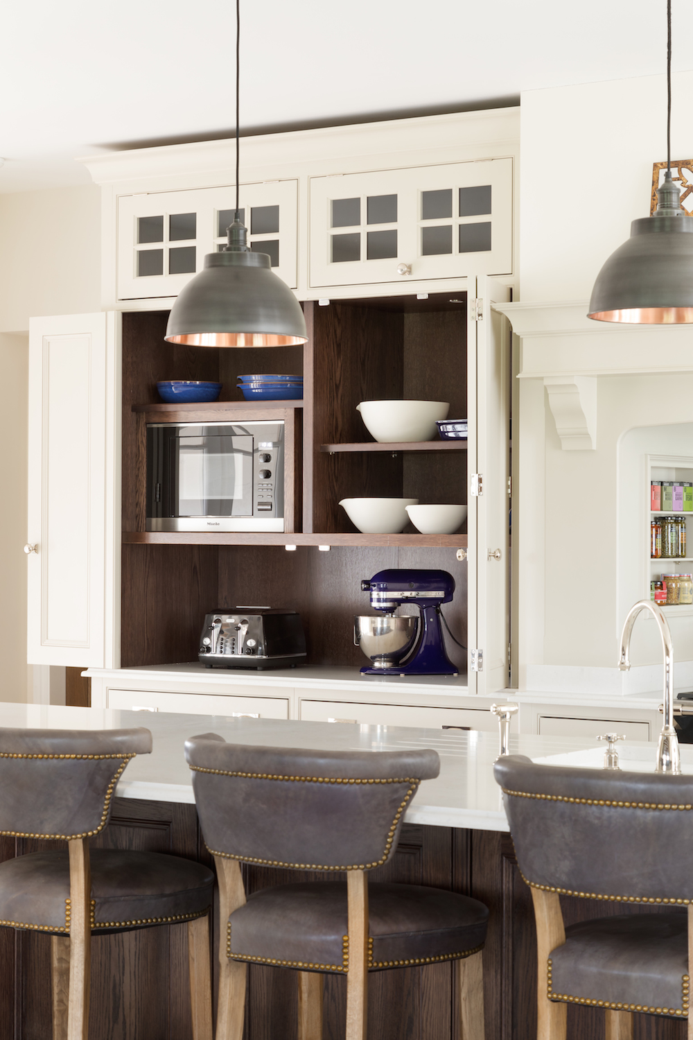 We’re proud to design and manufacture all our kitchens at our workshop in Felsted where the traditional joinery of the past meets the technical innovation of the present. We employ only the finest cabinetmakers whose passion for their craft is proudly displayed in each beautiful handmade kitchen. As well as kitchens, we also design, manufacture and install cabinetry throughout the rest of the home. In order to offer a truly bespoke kitchen design service, we provide a curated selection of accent woods, worktops and hardware along with our own paint range produced exclusively for Humphrey Munson by Mylands.