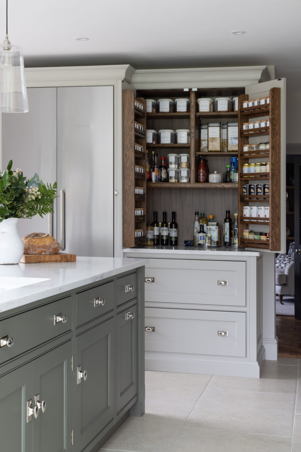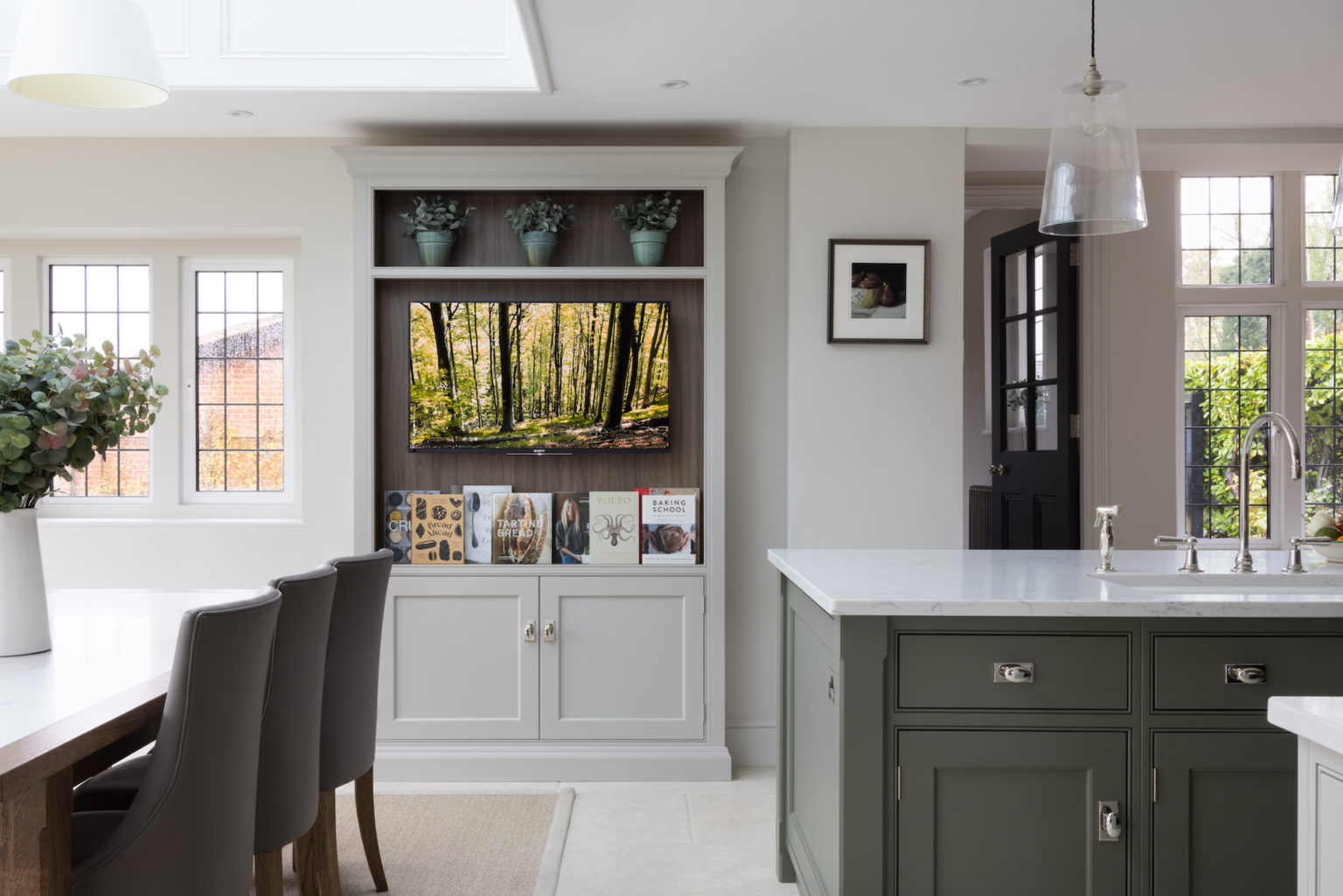 There’s a funny thing with Humphrey Munson projects; something we can’t put our finger on. It’s a feeling when you walk in – even though it’s new, it doesn’t feel new. It feels like it’s always been there; quiet and content. Nothing jars, nothing irritates. There is true workability which is key for the cooks and bakers who need space, storage and organisation. This project is truly a classic reinvention in all senses. The views to the rear of the house are endless, green and captivating. We used the colour Lock & Load amongst others to weave a thread of the outdoors from one room to the other.