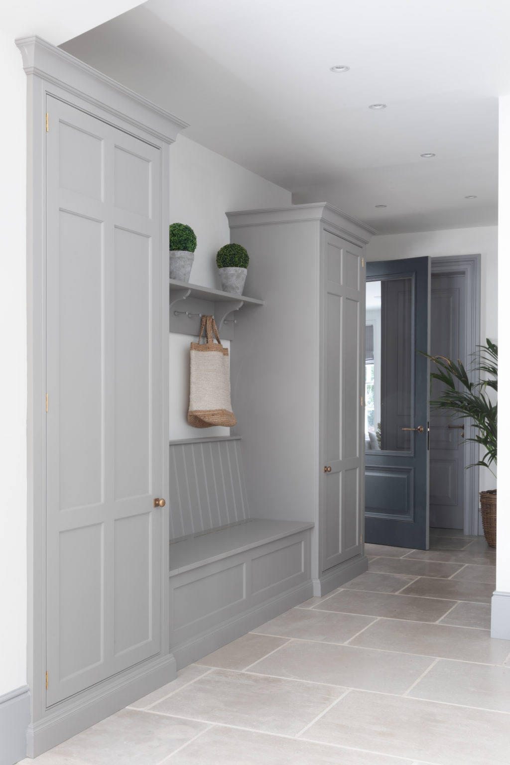 Interior designer and mum of three Holly Donoghue, entrusted Humphrey Munson with designing an open plan kitchen, spacious walk in pantry, a practical, orderly boot room and a super hard-working utility room during the full scale renovation of a large family home in Weybridge, Surrey.